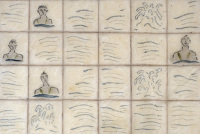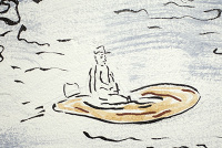 月球人创作艺术的历史也将近有半个世纪的时间,但从来就没有任何艺术形式能同沙画在月球上产生的影响力相比较。而且有趣的是,带动这股风潮的并不是什么职业艺术家,他只是一个不务正业的火箭工程师。据说他来月球还是因为工作上的一次重大失误,单位就让他换一个环境到月球上班,说是调动工作,其实也就惩罚性把他流放在月球养老。到月球后,生活实在是过于沉闷,就跟牢房里的犯人一定要找一点事情在墙上涂涂画画一样,这位工程师也用一些剩余的工程材料制作一些古怪的圆盘机器在月壤上涂涂划划。随着他在月壤上的创作数量和质量越来越多,月球上模仿他创作行为的人越来越多,到后来甚至连职业的艺术家也参与进来。沙画就开始成了我们的主流创作了。有一些狂热的沙画爱好者为了纪念当初带动这股风潮的工程师,将月球南极陨石坑中从高空看上去形状像人半身侧面的阴影以及中间的时常会出现的巨大圆形光斑的地貌当作是这位工程师获得将机器物理运动与月球地质漫长时间所相结合的灵感诞生的奇迹人生。