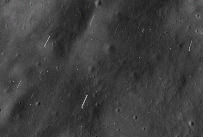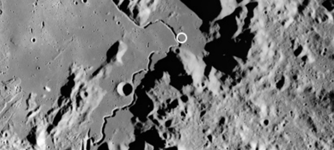 Thank you for your patience to listen to my safety guide. We are at an altitude of 132 meters from the surface of the moon. Can you find the sunken surfaces when you look down? We call it the lunar domes. Now everyone takes a closer look at some of the domes with a relatively large area. Can you find a dome with a strange shape? I believe that sharp-eyed friends may have discovered it, and those who have not saw it do not have to worry. When our spaceship approaches, we can clearly see it.