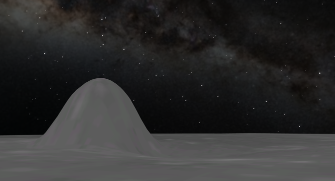 现在我们让机长把飞船先悬靠在离地面132mi的地方。请大家注意周围的几个面积比较大的穹丘的中心。其中有一块中等大小的穹丘(lunar dome)中间是不是有一个突起物?好的,这就是我们今天的第一个景点。现在机长将高度降低到离地面35mi的地方,这个高度就是最佳的观景点了。我们是不是可以清晰的看到一个高塔式的建筑?它是按照一百多年前的垂直接地天线的形状而设计的,是月球最受欢迎的纪念碑之一。几乎每天都有月球居民在早晨的时间从Mare Humorum出发,走上上3天的时间,在纪念碑附近的居留地待3个星期左右的时间,然后纪念碑前打坐,冥想或是朝拜,然后在月球的太空暗下去的之前用最后的几天时间返回Mare Humorum。